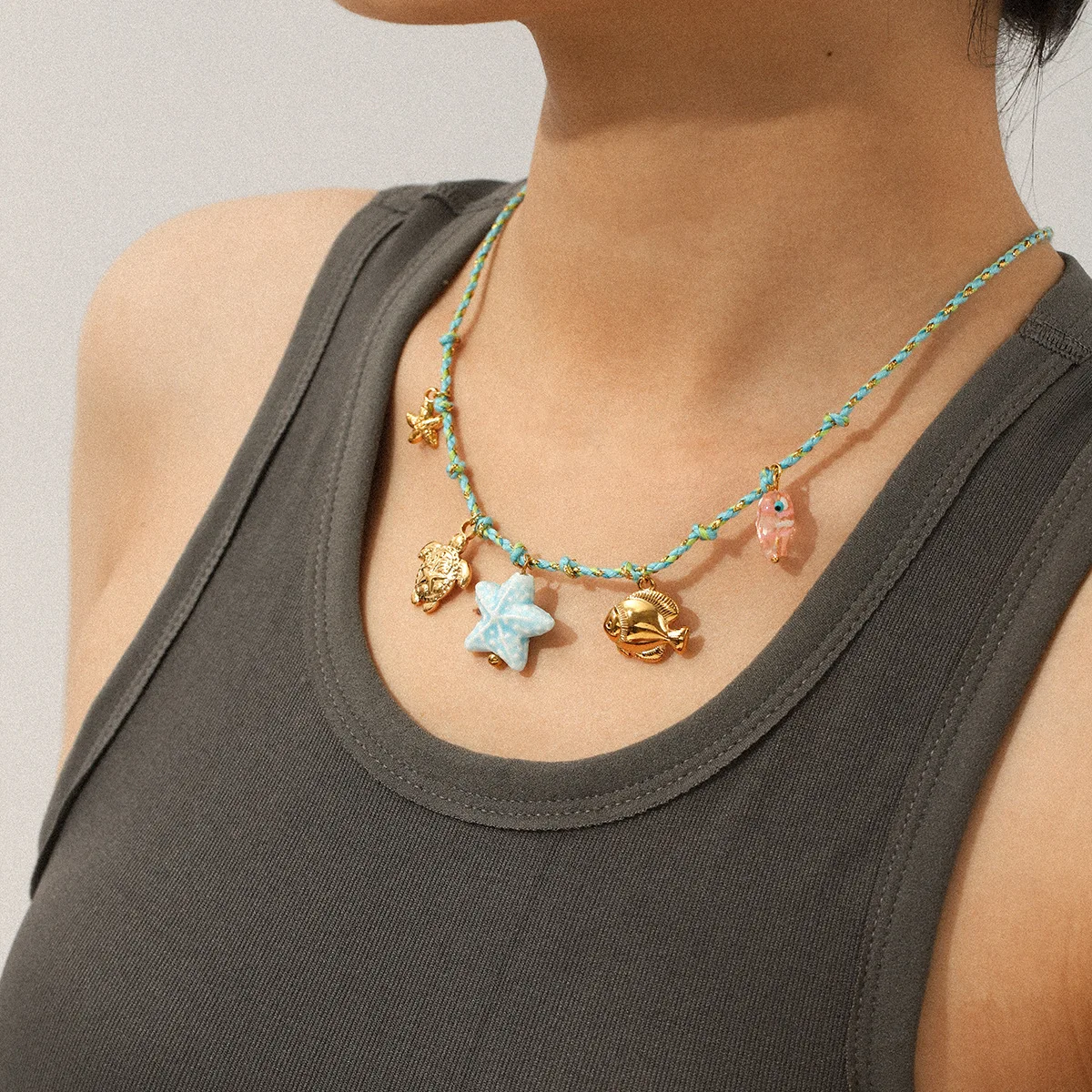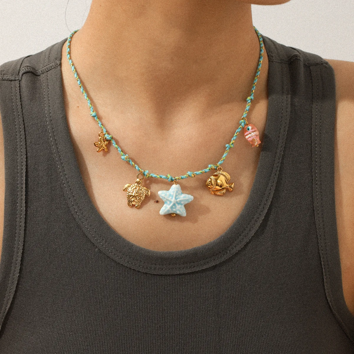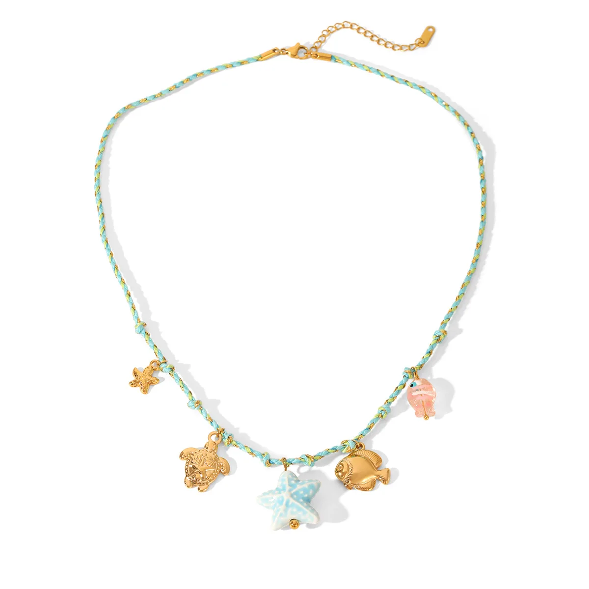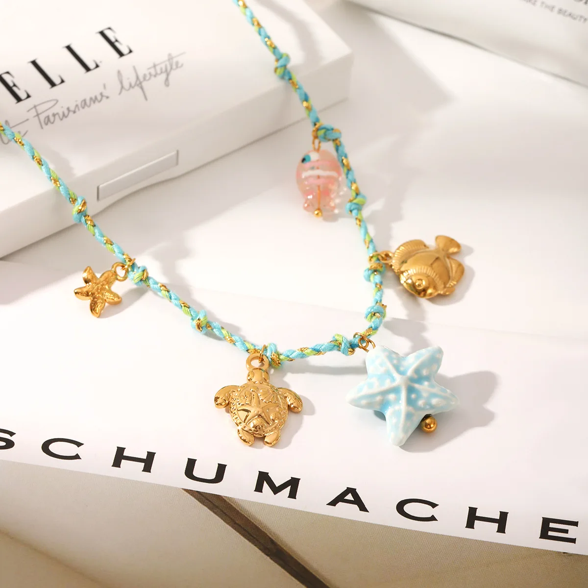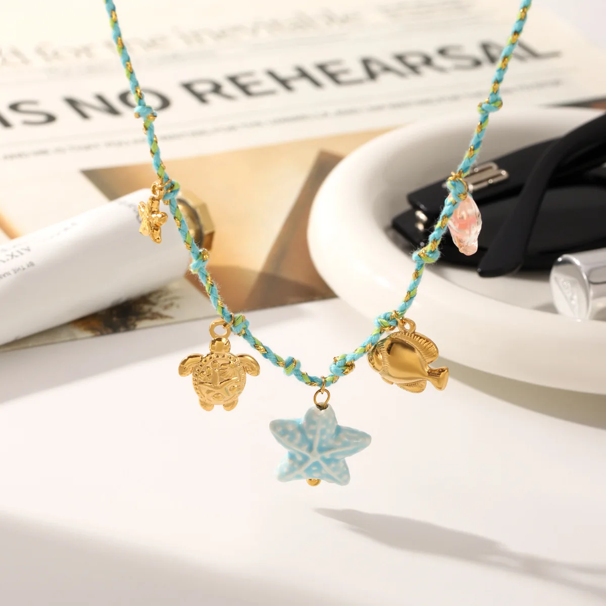 MW Style Dreamy Colorful Summer Stainless Steel Necklace 18K Gold Plated Women's Ocean Beach Charms Starfish Shell Rope Party